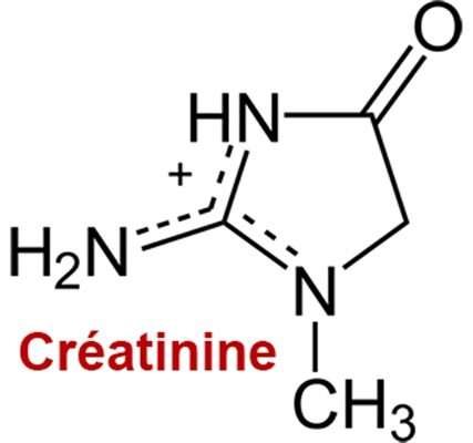 La créatine est un acide aminé non essentiel que l'on retrouve principalement dans les muscles squelettiques et qui est synthétisé dans les reins, le foie et le pancréas et qui sert à produire de l’énergie. Son produit de dégradation est la créatinine qui est le déchet métabolique provenant de la destruction normale des cellules musculaires, en perpétuel renouvellement.