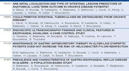 Liste des communications algériennes affichées pour le 16ème semaine européenne de gastro-entérologie