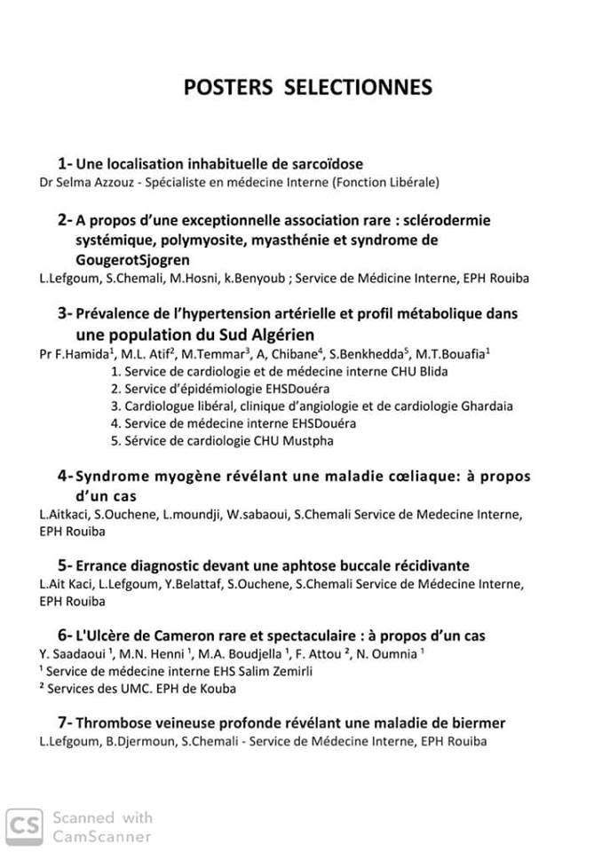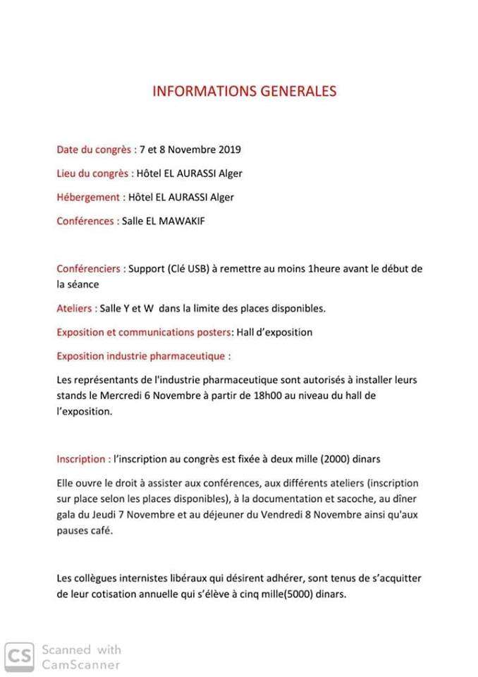 Soumission: Adresser les abstracts à l’adresse mail de l’association avant le 15 Octobre 2019 à minuit : medecineinterne@yahoo.fr