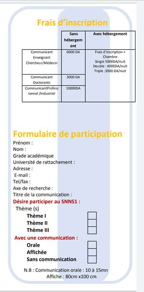 1er Seminaire National De Nutrition Et Santé (Snns1), se tiendra les 04 - 05 Décembre 2019 à 08 :00 à la Faculté Des Sciences De La Nature Et De La Vie