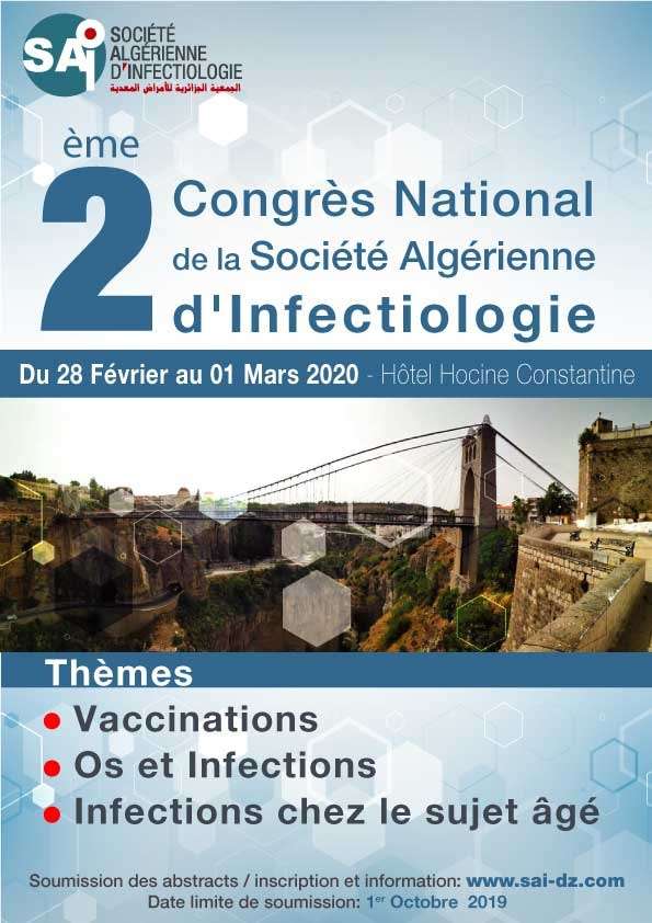 02 ème Congrès National de la Société Algérienne dInfectiologie- Les 28-02-2020 / 01-03-2020 -Constantine