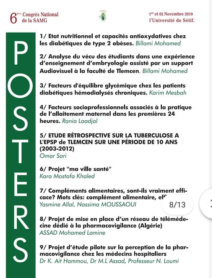 6éme congrès national de la SAMG – Les 01 et 02 Novembre 2019 à Sétif