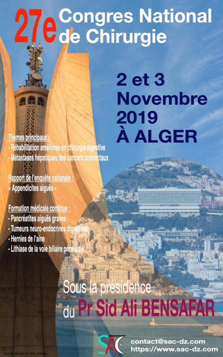 27 ème congrès national de chirurgie-les 2-3 Novembre 2019 à l’Hôtel El Aurassi, Alger