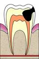 C’est la lésion la plus courante au monde. Il s’agit d’une affection des tissus durs de la dent qui progresse de dehors en dedans et aboutit à la cavitation. Elle n'a aucune tendance à la guérison spontanée . Chez l'enfant, elle peut entraîner des troubles de l'alimentation, du sommeil et du comportement.
