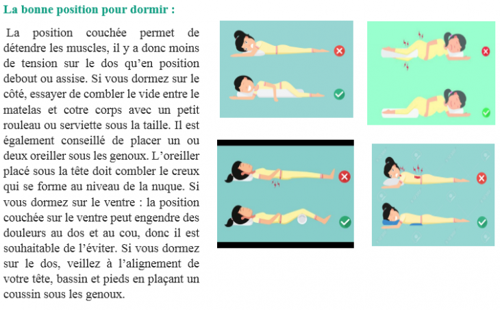 Au quotidien, les gestes, les efforts physiques qu’on exerce ou tout simplement une certaine posture, peuvent agresser notre colonne vertébrale et nous génèrent du mal au dos, car les maux viennent d’une pression sur quelque vertèbres, alors qu’à l’état normal, elle est réparties entre les articulations des 33 vertèbres et muscles détendus. Soulager ses maux commence tout d’abord par la correction de sa posture et d’en adopter une plus saine.